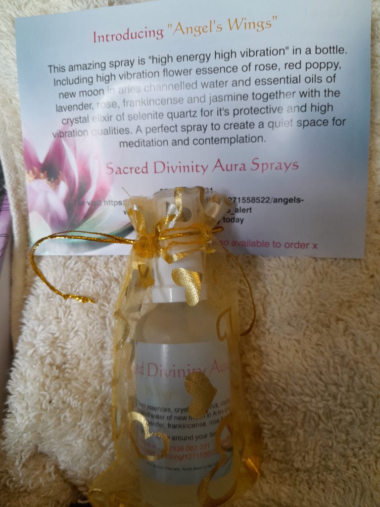 Introducing Angel’s Wings the latest spray from Sacred Divinity Aura Sprays – the idea for this beautiful spray came to me during a very special healing session.